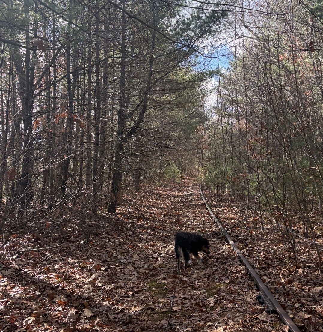 Recently, Waldo and I have been continuing to force our way along an abandoned piece of the defunct Massachusetts Central Railroad, through bushy, weedy thickets with embedded saplings and thorny multiflora rose. This is one big pain in the posterior, sometimes elsewhere, and I’m not doing it because I enjoy it. I tolerate it. What motivates me to continue is the genetic, marrow-deep, desire to see what it’s like, just up ahead. It feels good to give into an instinctual drive to do what our ancestors did over the millennia – explore. Appealing, too, is that it’s likely that few, if any, have ventured this way in a very long time. That makes me feel kind of special. The fact that it is difficult also gives me a sense of accomplishment when I’m done.