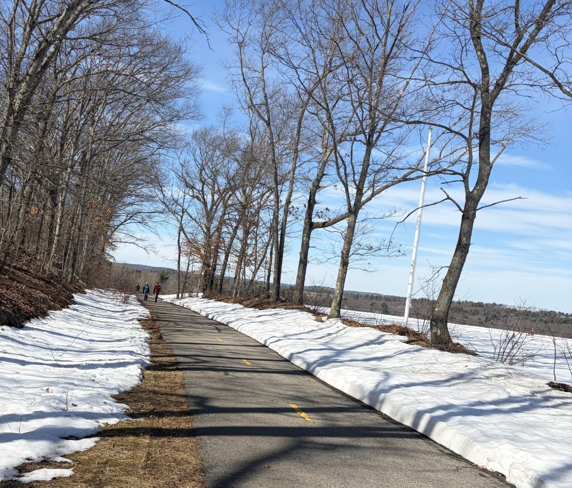 My energy has returned as well. Not getting much exercise for almost a month has made it hard to get back into daily long walks, but I’m getting there. Even the weather has cooperated, with temps in the high 20s and low 30s, no more deep snow and even some bright sunny days. At last, we are back on the trail. Things are looking up.